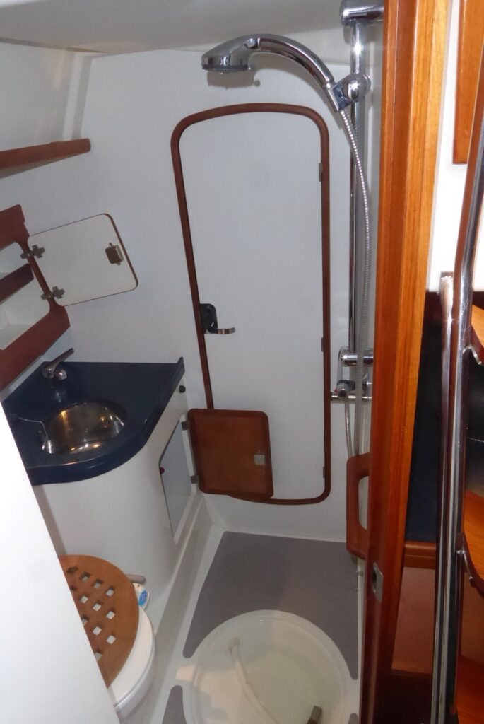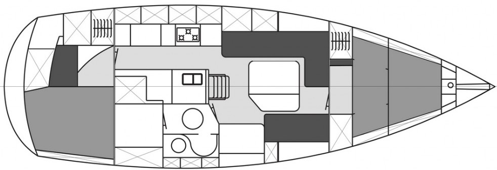 - Zwei Kabinen mit insgesamt vier festen Kojen (+ 2 im Salon)